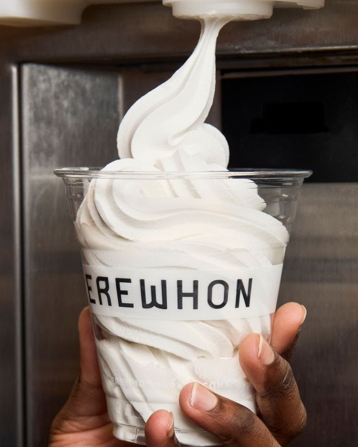 Cult brands don’t push. They pull. They build self-contained worlds with their own rituals, semiotics and values. Walk into an Erewhon and you know what’s expected of you. Same with a Glossier showroom. Same with the TikToks of a Rhode girl applying glazing milk with the unbothered finesse of someone who’s never had a breakout or a bad tax year. It’s not marketing. It’s myth-making.